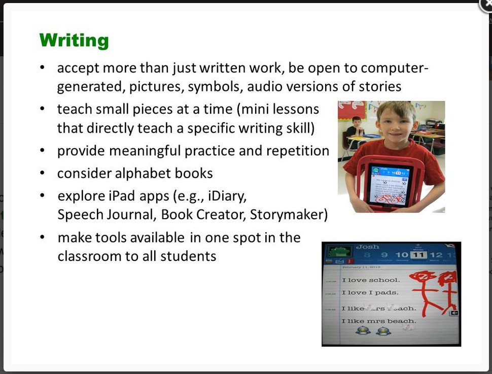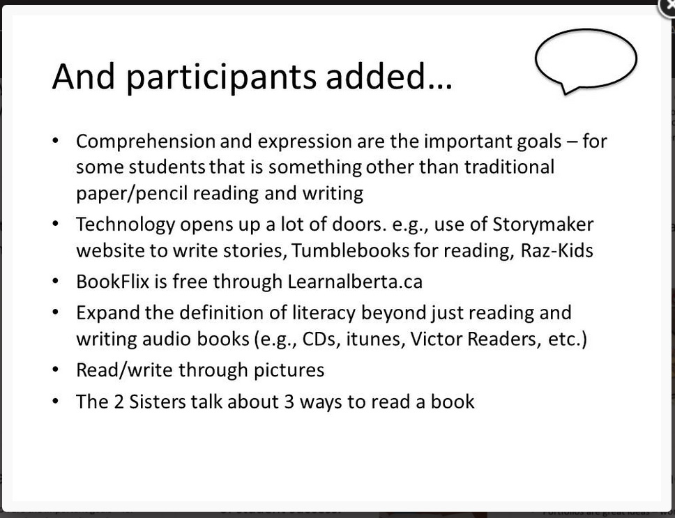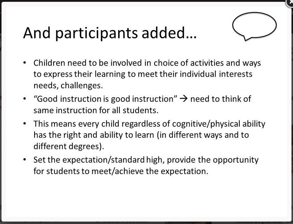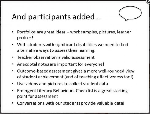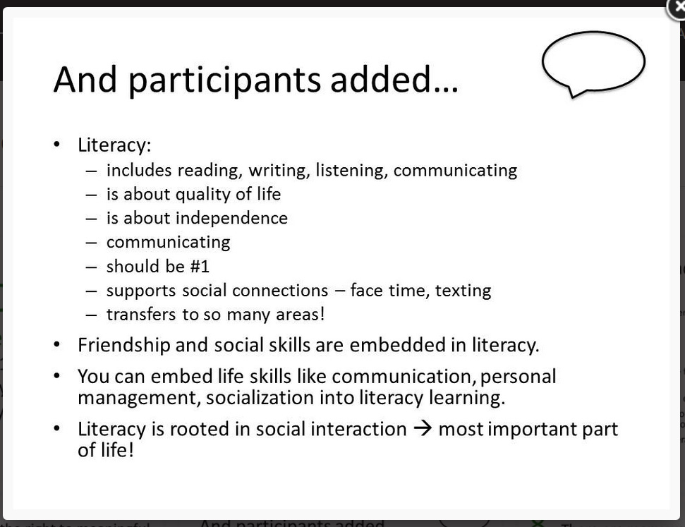 In the example below, participants in the second year of the Literacy for All community of practice were invited to considertraveling brainstorm strategy how they had changed their instructional practice to increase accessibility and enhance the participation of students with significant disabilities. The reflections they generated through a traveling brainstorming strategy were posted to the public website for all educators to consider. Click here to view the traveling brainstorm strategy.