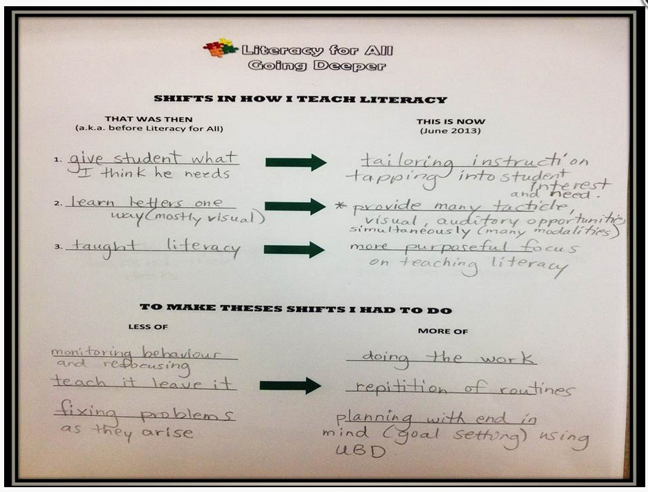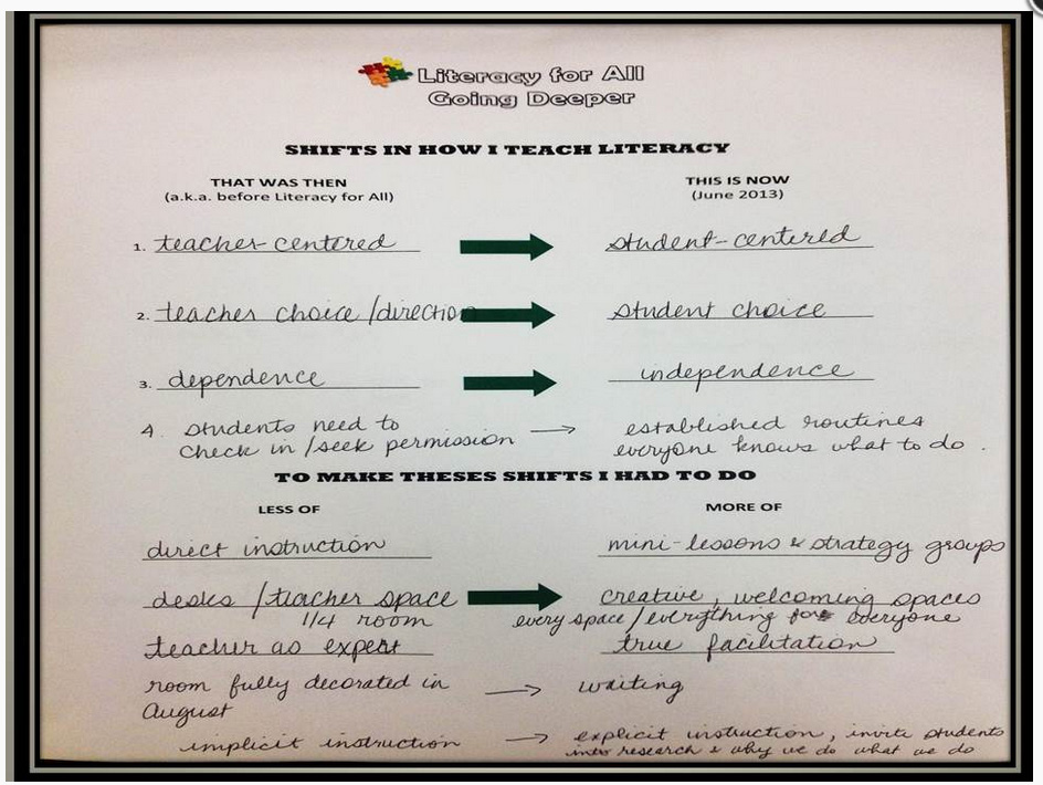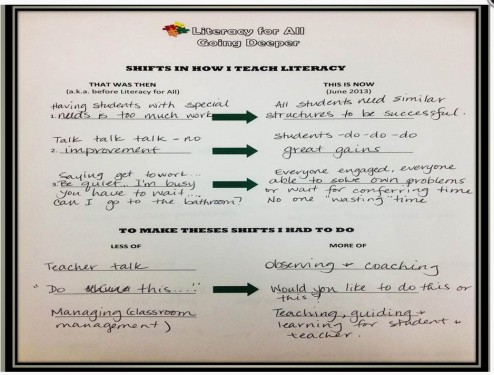 In this first example, classroom teachers reflected on how incorporating information and new literacy strategies affected their instructional practice. This analysis was helpful to not only the teacher participants but to consultants and school leaders who were interested in supporting these kinds of instructional shifts
